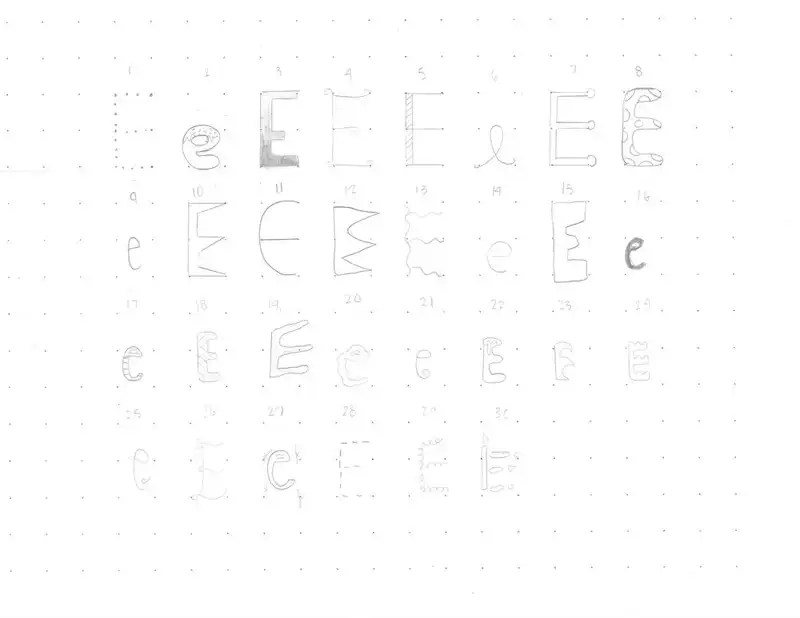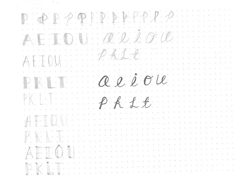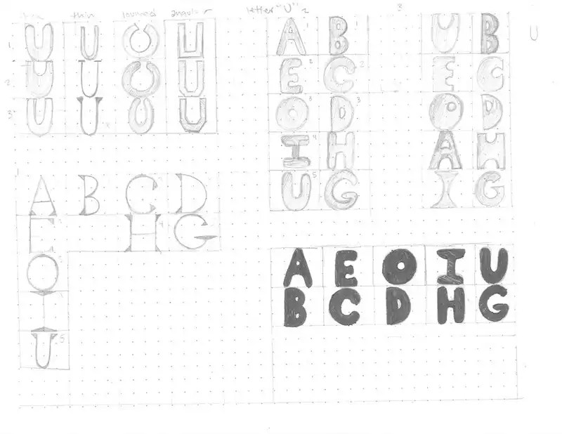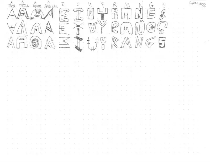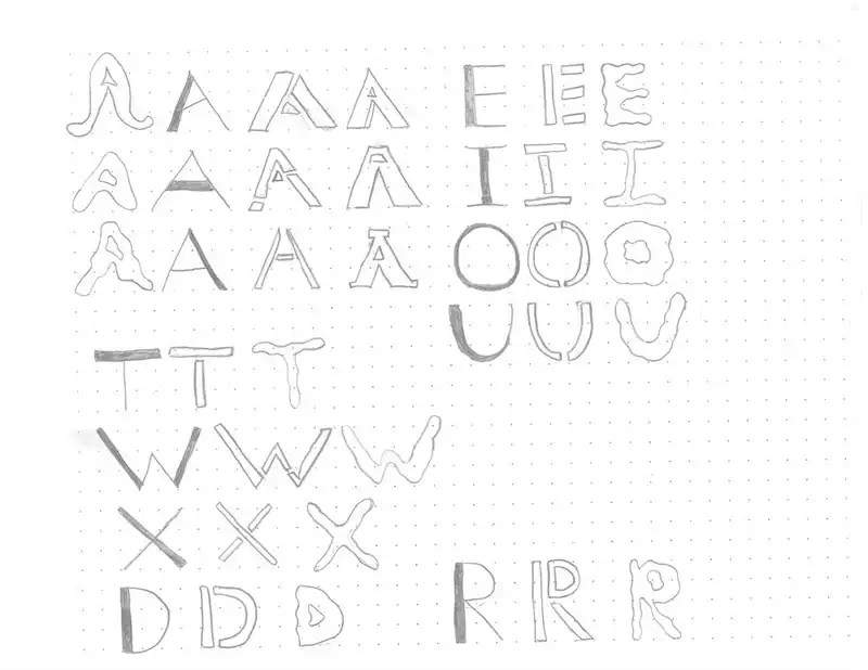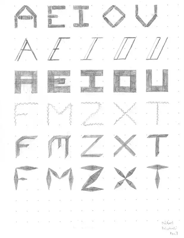 • Each student will design a font style and use 5 vowels and 5 consonants to display the font. The example image above shows different letters but with a consistent styling