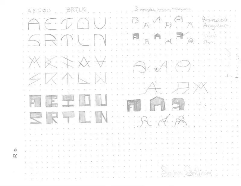 There will be three different versions of the letter in each style: three thick, three thin, three rounded and three angular for a total of 12 versions of the same letter