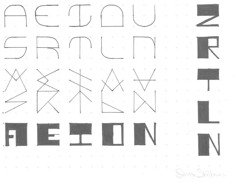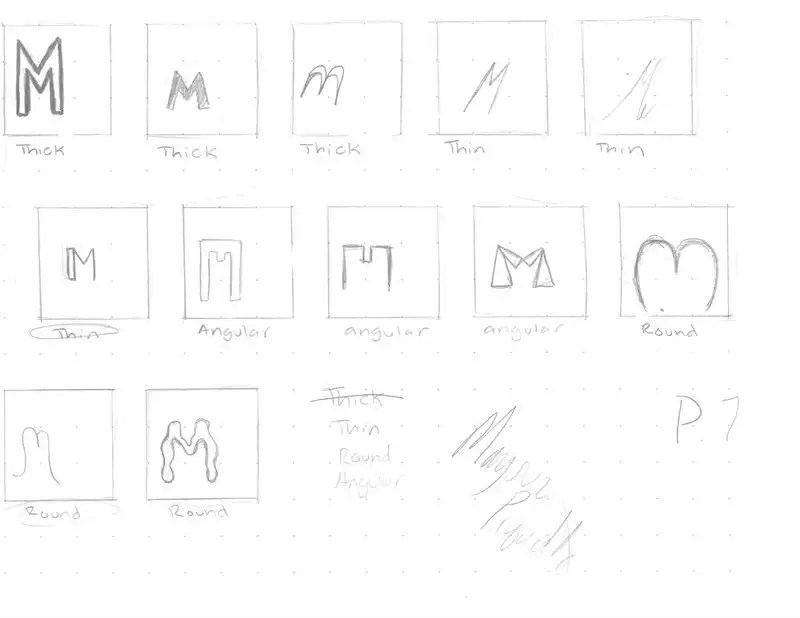 • It is important that each student see their progression: ALL thumbnail sketches of each letter must be kept and turned in both to Canvas digitally as well as in hard-copy form. The letters’ design will be worked out on graph paper and should have a unified look